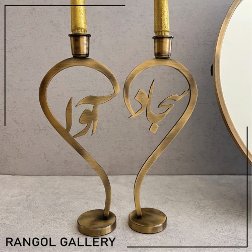 در عکس : شمعدان های اسم سجاد و آوا به رنگ آنتیک می باشد