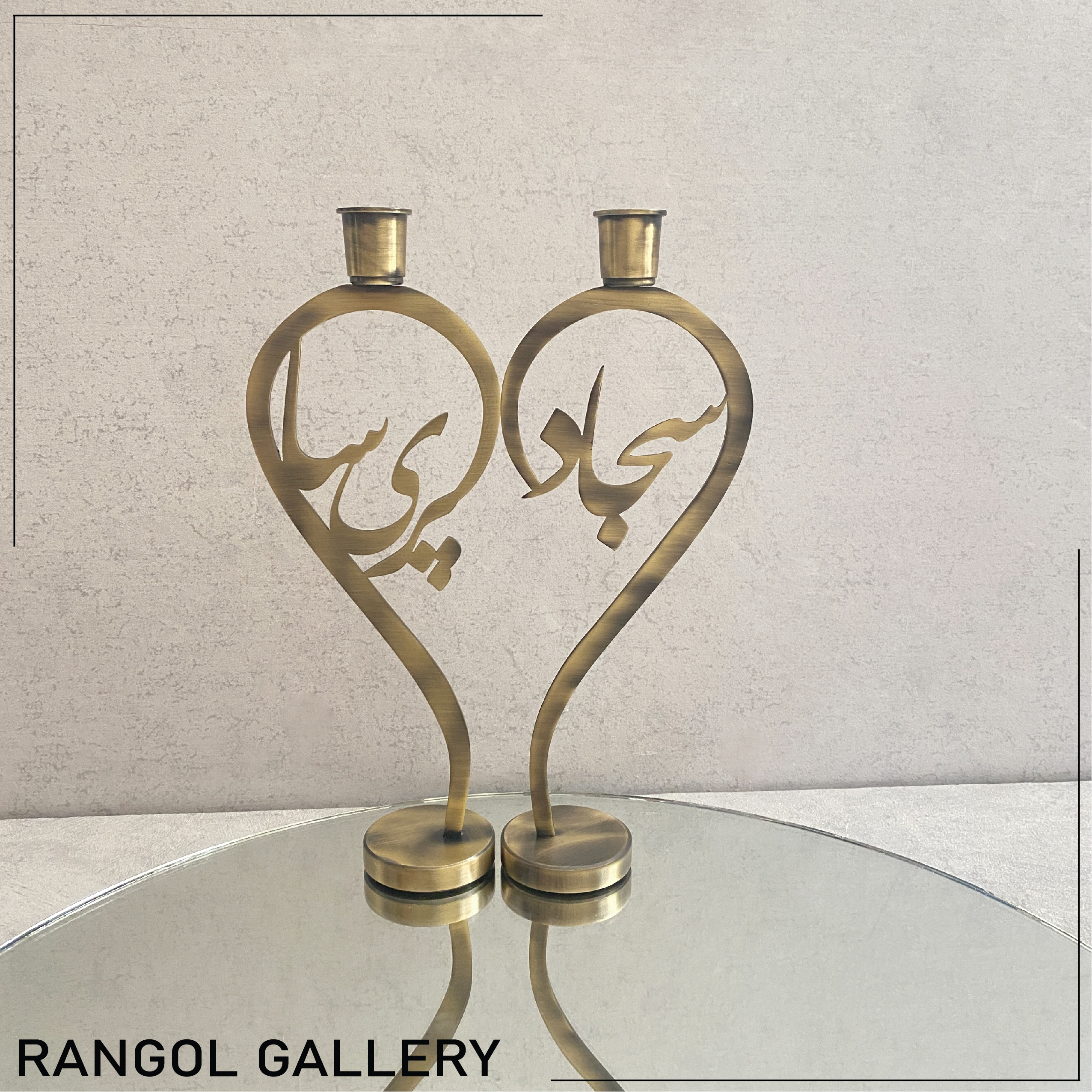 در عکس : شمعدان های اسم سجاد و پریسا به رنگ آنتیک می باشد