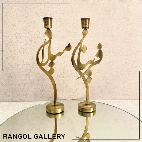 در عکس : شمعدان اسم فریناز و میلاد به رنگ آنتیک می باشد