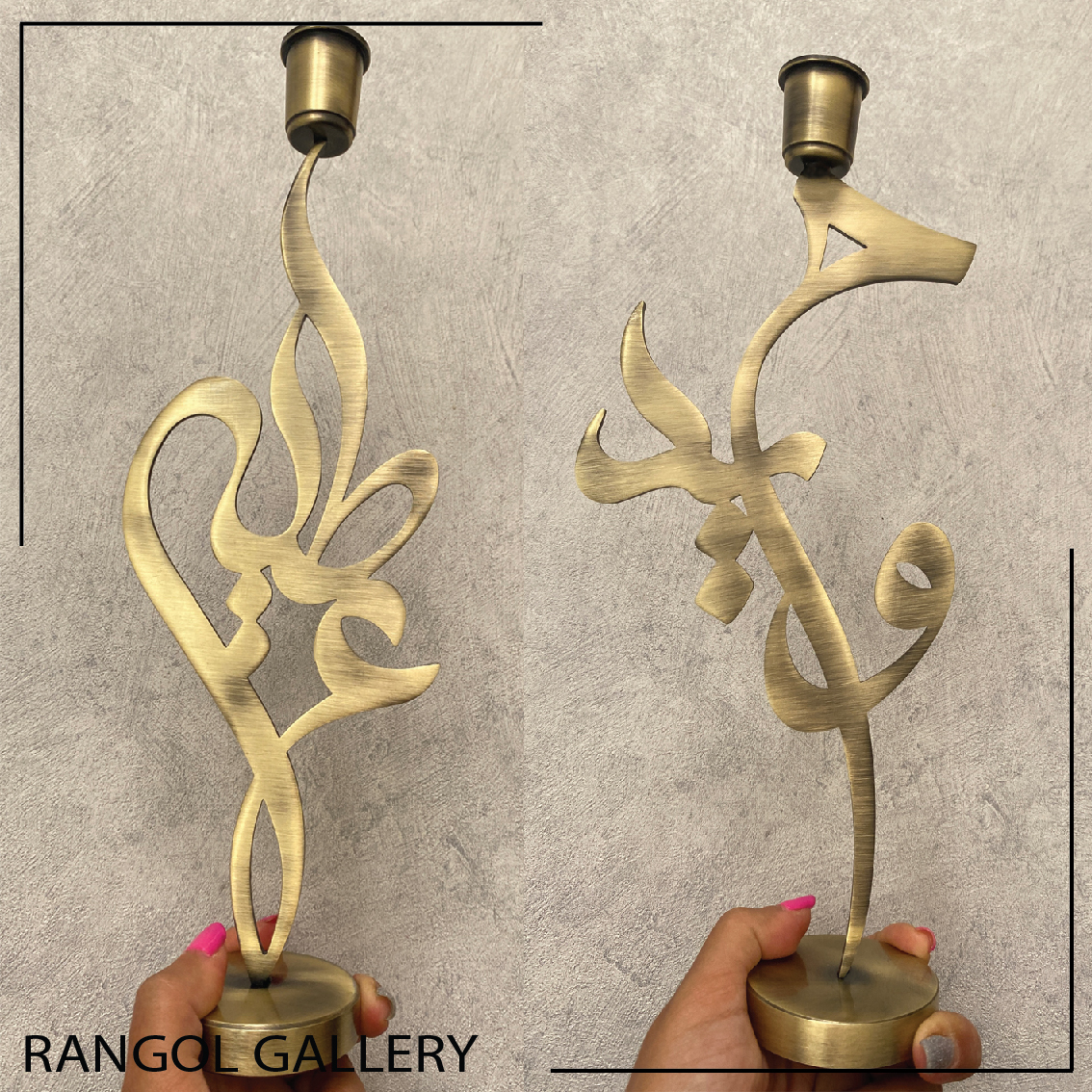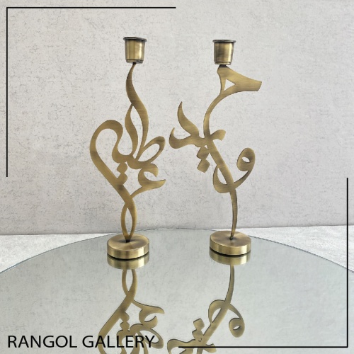 در عکس : شمعدان اسم وحید و عطیه به رنگ آنتیک می باشد