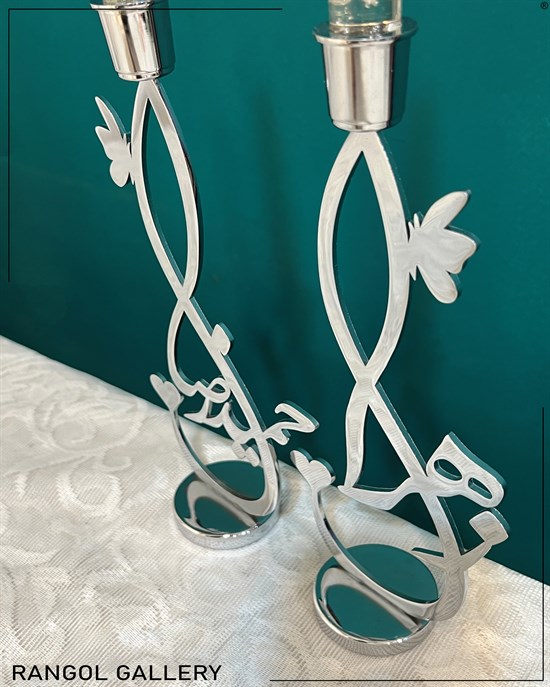 آینه شمعدان نقره ای با شعر و اسم شما