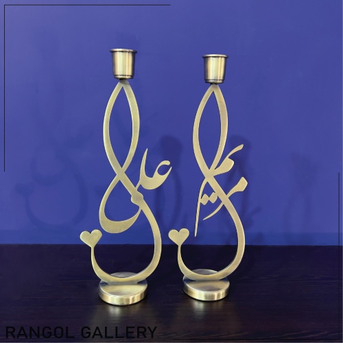 در عکس :شمعدان های اسم مریم و علی به رنک آنتیک می باشد